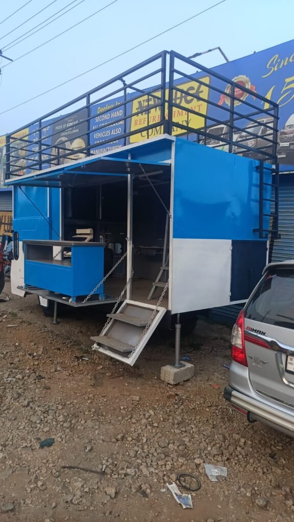 commercial vehicle refurbishment specialist in South India. We transform regular commercial vehicles into fully functional, attractive, and durable food trucks tailored to your brand and business needs. With more than 10,000 happy customers, we take pride in delivering quality craftsmanship, innovative designs, and end-to-end fabrication solutions. Whether you’re starting a new food business or upgrading an existing truck, we ensure top-notch finishing, long-lasting build quality, and outstanding service.